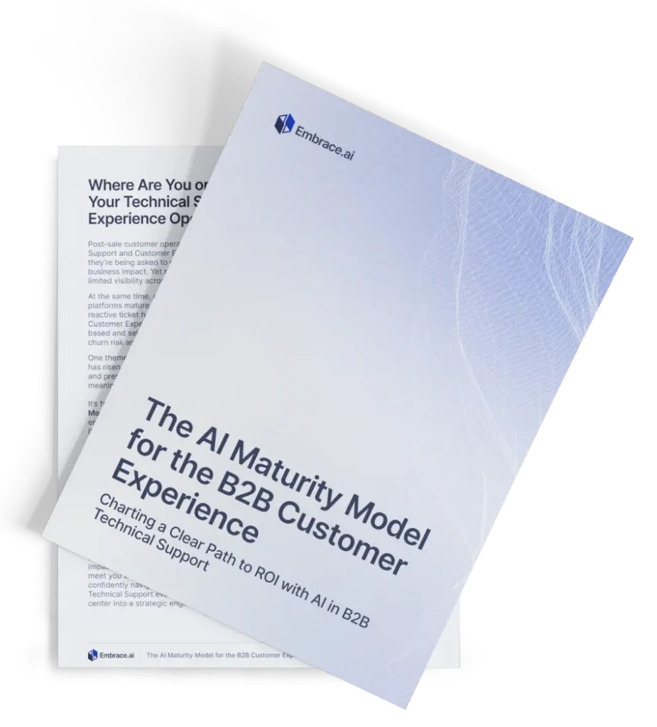 That’s why we created the AI Maturity Model for the B2B Customer Experience, a practical framework to help organizations assess where they are today and understand how AI’s role must evolve as Support scales. The goal is simple. We want to help CCOs and Support leaders to chart a clearer path to ROI with AI that delivers real customer value.